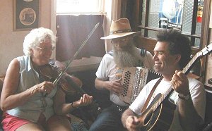 K: They gave him Coumadin and they didn't tell him that it would make him depressed, which it does. So he was really depressed. He hated where he lived, he hated music and then somebody told us about this and we told him and as soon as we told him, he went, “Oh! That's why I feel like this! Oh! I don't have to feel like that.” He just felt like he couldn't play; that he couldn't play like he did. We kept going out there every couple of weeks and we kept bugging him and bugging him to play. We'd make him play and he'd be really rough. But since we had learned a lot of his tunes, we were able to bring him back. And that's when he made these recordings, it was after his stroke.