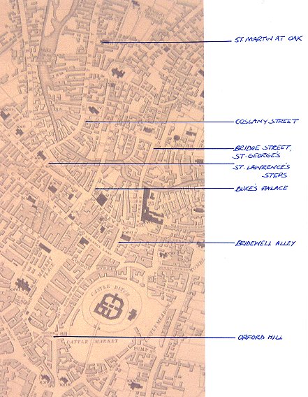 White's 1836 directory has Walker in Timberhill, south of Norwich Castle, the only time that Walker is found elsewhere than in the north-and-west-central part of the city.