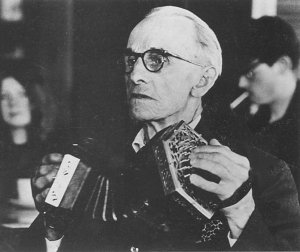 I think very much that’s right. He could play songs and later in his life, he played for sing-songs in pubs; he could always follow anybody, but essentially, he was a dance musician. He started very early in life. He was about eight when he started playing the tambourine and he learned the tambourine from his uncle who was born about 1826. His uncle was about sixty-five and Scan was eight and they went around as a pair! But they had a third member; a trio as it were. That was Scan’s older brother Trayton, who was another concertina player and I suspect, though I’ve got no real evidence, that he was also a fiddle player. And he could play the cornet and Scan said that was a knock-out on any instrument. That was the trio. Trayton was about twenty-three, the old man of sixty-five and the boy of eight and that was the pub trio. They went around different pubs playing.