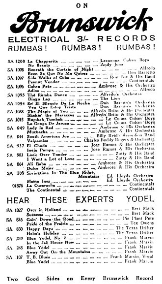 The voice in the record belonged to Jimmy Rodgers. He was singing a song called Waiting for the Train with guitar accompaniment. The first time I heard that record, it took me like a drunkard takes to drink. I didn't want anything to go wrong. Not while I was listening to that record.Such was the magnetic power of Jimmie Rodgers' late 1920s commercial recordings. What made them so irresistible was Jimmie's 'blue yodel'. Within months of their release in the States, Jimmie's records were available in South Africa, and by 1932 a black South African singer named William Mseleku had 'recorded some songs directly modeled on Rodgers's 'Blue Yodel' series'.