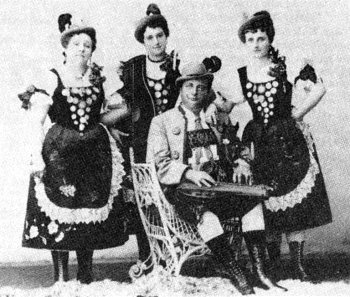America's most popular nineteenth-century singing family, the Hutchinsons, made regular use of yodeling. Quick to parody the singing-family idea, minstrel show quartets took up yodeling as 'tyrolesian business'. An 1853 program for Christy's Minstrels announces their burlesque of the Hutchinson Family singing 'We Come from the Hills with Tyrolean Echo'.