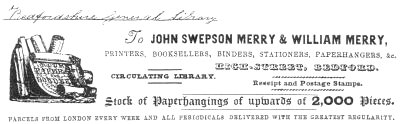 2 This may suggest a change of address from the ‘old-established’ office in Castle Street but, equally, there is no reason to suppose that Castle Street was abandoned. It could be that both premises were being used. Indeed, the expansion may connect with the next known occurrence when Merry sold his stock in 1835.