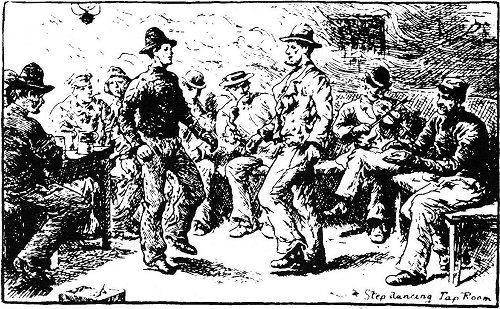 Harry's denial of any involvement with polkas may seem strange, but most of the polka-type tunes played locally were song-tunes and probably thought of as such, or one-offs, like the Heel and Toe Polka (more familiar as 1-2-3-4-5). And Harry would in any case probably have thought of the polka as a type of dance rather than a type of tune, as he would also a jig. The 19th century tune-type which most frequently augmented the older hornpipes and "jigs" was the schottische. (And the wearing of clogs for work was once much more widespread than modern prejudices allow).