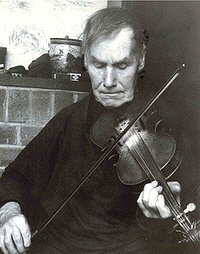 So what is it that appeals to me about Harry Cox's fiddling? Like most English fiddling it is obviously extremely powerful and yet - in its way - precise and sophisticated. That sophistication lies in the way he accents the music, which he does as effectively as any modern virtuoso might (but seldom does). Rough, it's true, and sometimes inexact, but those characteristics do not in any way detract from its excitement - and it is exciting music. Nowhere is there the tentativeness or uncertainty which might bewray inexperience: Harry Cox feared neither turn nor triplet, and such devices in fact lard his performances. I cite this not as an indication of virtuosity (which traditional musicians in 20th-century England - with the possible exception of small-pipers - seem to have eschewed completely in favour of expressiveness) but of confidence, a confidence which lends his music a rough majesty which is utterly convincing once you have learnt the language.