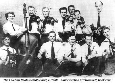Our next step was to bring the distinctive music of West Clare to a wider audience and we set up the Laichtín Naofa Ceili Band, which involved most of the musicians of the Miltown - Mullagh area. During its lifespan -1954 to 1962 - this band carried our music to a large audience all over Clare, Galway, Tipperary Limerick, Kerry and Dublin ... The Laichtín Naofa bridged the gap between past and present by linking the musicians of today with musicians of another era. In this way it contributed to the preservation of traditional music and carried the influences of great music-masters to a new generation.