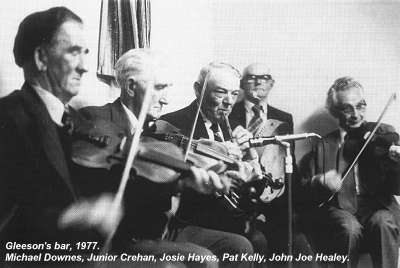For a while he played in Katty's Bar in Mullagh (owned by PJ Neenan, husband of Junior's eldest daughter, Ita). However, although an extremely hospitable environment for listening to the music, its size prevented dancing to any real extent. Eventually, former owners of the Crosses, Jim and Nell Gleeson, were to open a suitable venue for both music and dancing and so the 'Sunday nights at Gleeson's' were to beeline an established part of life in that area, and a Mecca for people who wished to see an example of the 'old days' of Irish music and dancing.
