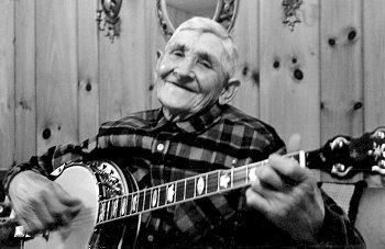 Wash was about ninety-three when we recorded him and had just survived a dreadful house fire. Nonetheless, he talked and sang virtually nonstop for a period of several hours. He was a vivid storyteller and told many tales of a rugged pioneer life. These were a bit disconcerting, because sometimes he would describe himself as a devout Christian penitent and sometimes as a thuggish near-outlaw. Which presentation was accurate? Well, probably a mix of the two. At one point in his life, he had sung in medicine shows. He told us that you could sing anything one wanted at those, including old ballads like The House Carpenter, but he indicated that Groundhog represented a particularly effective comic favorite. Wash no longer owned a banjo but I happened to have one along. Groundhog is a justly popular banjo tune, with many fine recordings (Jack Reedy; Morgan Sexton; Arnold and Doc Watson; Cousin Emmy on the Berea College Library website), but Wash's older, minor key setting is less common (the banjo is probably tuned gDGCD).