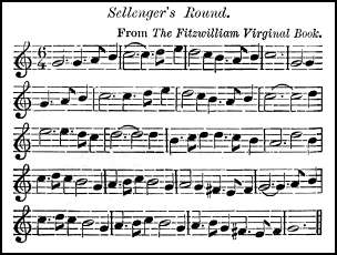 The Dancing Master, Musick's Handmaid, and Musick's delight on the Cithren. The original dance has probably been a May-pole one, and this is borne out by a rude wood-cut on the title-page of a 17th century 'Garland,' where figures are depicted dancing round a may-pole, and 'Hey for Sellinger's Round' inscribed above them.