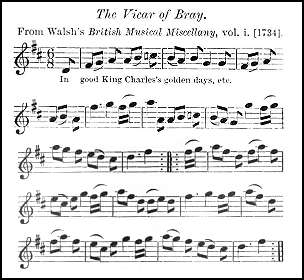 The tune now united to The Vicar of Bray, though an old one, is not the original, and in fact the union of the two is comparatively recent.