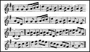 The structure of the tune shows that it is of some antiquity, but unfortunately there is no definite evidence of its existence prior to the middle of the l8th century. When Robert Burns wrote his fine song Scots Wha Hae, to the air, he told George Thomson that it was constantly asserted that the tune was played at Bannockburn by the Scots army, hence his adoption of the tune for his verses of which the subject is Bruce's address to his followers before the battle of Bannockburn.