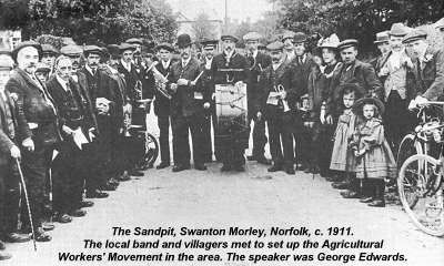 In 1906, George Edwards, another Norfolk man, founded the Eastern Counties Agricultural Labourers' and Small Holders' Union, the forerunner of the National Union of Agricultural and Allied Workers. Several members of Walter's family, including his father and Uncle Billy, joined the Trunch branch of the Union; and Walter remembers three songs from this period. All three appeared in an undated song book, 'National Agricultural Labourers' and Rural Workers' Union Song Book' (Caxton Press, Maddermarket, Norwich), a copy of which was owned by Uncle Billy. The booklet contains words to the following twenty six songs: