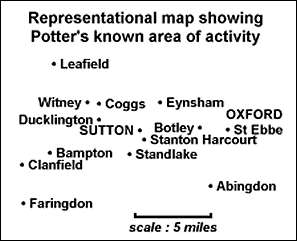 For more than three decades he travelled out and back from Sutton to Oxford and Witney three days a week (later adding a trip to Abingdon on Mondays), carrying goods and passengers to those market towns. His shop in Sutton itself sold provisions to keep body and soul together and would, in common with most country shops of the era, have acted as a focal point for meeting friends and exchanging gossip. We may observe, however, that his was a life more commercialised, more monetary-biased, and his status elevated far above his labouring peers. Even in times of widespread general dearth, such as occurred during the Crimea War of the middle eighteen fifties, he is unlikely to have wanted for at least the basics. And yet, although his various enterprises took him many thousands of miles, Potter's whole life appears to have been played out within a fifteen mile radius of his birthplace.