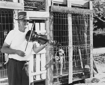 Probably the fiddler from that area that had the biggest influence on Buddy was old man Morris Allen over in South Shore. Budd really liked Morris and his wife Agnes. Morris had been raised by the Keibler family and there were seven fiddle players in that family. They always said that Uncle John Keibler was supposed to have been the best. Morris had really good jobs in the steel mills over at Portsmouth and in New Boston. He was also a big fox hunter. I still remember the first time I went up there with Buddy, Morris was out there doctoring on them dogs. His dogs had some kind of mites, so Morris was blowing some kind of powder in their ears through a straw. Boy, was he a mess when we showed up: he had that powder and tobacco juice all over him and his dogs. But Morris didn't care what anybody thought of him. He'd always speak his mind. Anything that came on his mind, he'd just say it. Oh, he would insult people. He'd hear somebody playing, and if he didn't like the way they played, he'd tell them. He'd say, "Oh, you can't play no fiddle. You're all wrong. You're playing that wrong." He never worried about nobody jumping on him or nothing, because he always had carried a gun in his pocket.