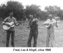 Getting back to contests, the man that taught me more on the fiddle and done me more good than anyone else is a fiddler by the name of Pete McMahan. Pete has the best expression with his bow that you ever heard and the most solid time. I played rhythm for him for many years, all over the place. Pete Mac would call me up, "Fred, let's go to such and such place," you know. And Pete was always good about paying his rhythm people. Some fiddlers used to just take us for granted, but Pete always paid twenty percent of his winnings to his rhythm. And after that got ahold, I played for another great fiddle player, Cleo Persinger, and for Jake Hockmeyer from Spokane, Missouri, who's the finest left-handed fiddle player I ever heard. And I played for the Wells boys from Booneville. Many times I made more money with the guitar than I did the fiddle. I could always get in the money, but winning came slow for me. But I could always do pretty well with my guitar.