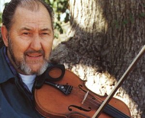 There's another little town called Deepwater that had two little dance halls and many a Saturday night, me and some of my brothers would play in one place and maybe Dad, one of my uncles and my other brother would play right across the street, and the people would just drift back and forth between us. Of course, sometimes there'd be trouble. Now, my dad wasn't a nonsense type of guy and he didn't like drunks breathing on him. This one old boy had walked in a dance when the set had already started and that made him mad. He put his hand around the neck of Dad's fiddle and said, "If I can't dance, there'd ain't nobody gonna dance." Naturally, that stopped it. Dad just set the fiddle down quietly and pulled out a pocket knife out of his pocket and went, "Clip!" - he snipped oft a hunk of the man's ear. He said, "Now, you get away from here and don't bother me no more." And that solved that problem.