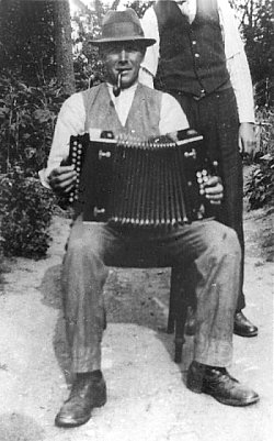 Fred Pearce was born in Eyke in 1912, and didn't move to Blaxhall till 1938. He didn't start on the accordeon ‘til he was 24, though he played mouthorgan as a child. “No-one taught me - I just picked it up.”