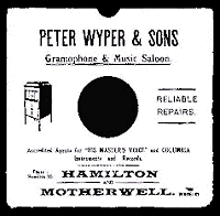 Peter Wyper's music dealership also gave him access to the necessary equipment for recording cylinders, and, like the Irish-American uilleann piper Patsy Touhey around the same date, he set to producing commercial items under his own label imprint.