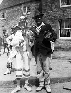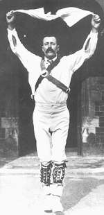 I've no doubt that this is probably so, but I don't see that this must mean that he wasn't influenced by them in any way. Another argument advanced is that 'The deep conservatism of his repertoire ... makes it unlikely that he would alter his whole approach to playing as a mature musician'. I'm not sure that Pop Goes the Weasel does in fact indicate such a deep conservatism. We are told that he was actually quick to learn new tunes, and did so when Headington added dances from other morris traditions to their repertoire, to enable them to participate more fully in Ring meetings (more evidence of 'deep conservatism'?). It is also interesting, though probably irrelevant, that the EFDSS - often pioneers in the use of sound-recording technology - never had him recorded until 1935. Even more extraordinary is the fact that he was never photographed actually dancing - this famous 1912 picture is posed. The extent to which he was influenced by the revival is obscure, but to deny any influence seems fatuous.