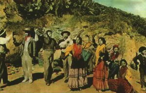 The other five titles from southern Spain are by an Andalucian cuadro gitano led by "La Coja", who was described in Walter Starkie's Don Gypsy (1936) as looking like an English nanny, but capable of terrorising her troupe when a row broke out. The cuadro is accompanied by mandolin, guitar, castanets, and tambourine, and given that these are unequivocally records of dancing, not just of dance music, one is again impressed by the way the engineers have captured what is sometimes a hailstorm of percussive sounds with such clarity. Once or twice, indeed, the recording medium is defeated, and the guitar work is reduced to a rhythmic buzzing, but in fact this ominous, bee-like drone seems quite appropriate to such wild and aggressive music. Rodney Gallop's review slightly flattered his Gramophone readership by implicitly including them in the "most people (who) would rather go further from the beaten track for their Flamenco singing and dancing." In 1938, when he was writing, these were the only cuadro flamenco recordings available, but even today, when flamenco is all too easily heard, usually in debased and clichéd touristic presentations, La Coja's team still sounds immensely exciting.